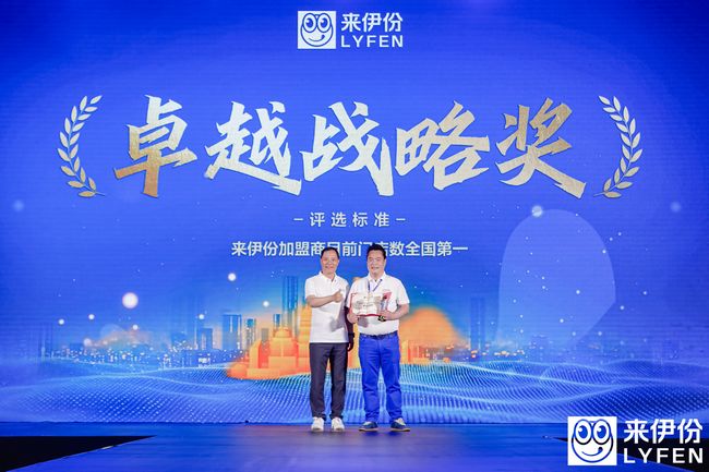 ▲高铁渠道销售额第一加盟商吴江波领取“渠道之星”奖2023年全国高铁系统门店年度业绩全国第一,年度销售额达到1678万。作为高铁渠道加盟商,第二次获得“渠道之星”殊荣的吴江波依旧激动不已,感谢来伊份品牌对门店的赋能的同时,也感谢山东来伊份团队的鼎力支持。作为2023年—2024年优秀标杆加盟商代表,云南禾岭科技有限公司总经理佟其罡每一年都会按时来参加合伙人大会,信心和希望来源于对品牌的认可,而最终实现业绩的突破,则是对于佟其罡坚持的肯定。