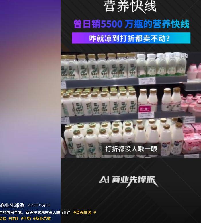 这篇文章阐发十年时间,从年销200亿的巅峰跌到不脚20亿,养分快线的销量下滑曲线后童年和芳华的饮品,现在正在超市货架上缩正在角落,即便贴着促销标签,也无法吸引消费者,这背后的缘由到底是什么?